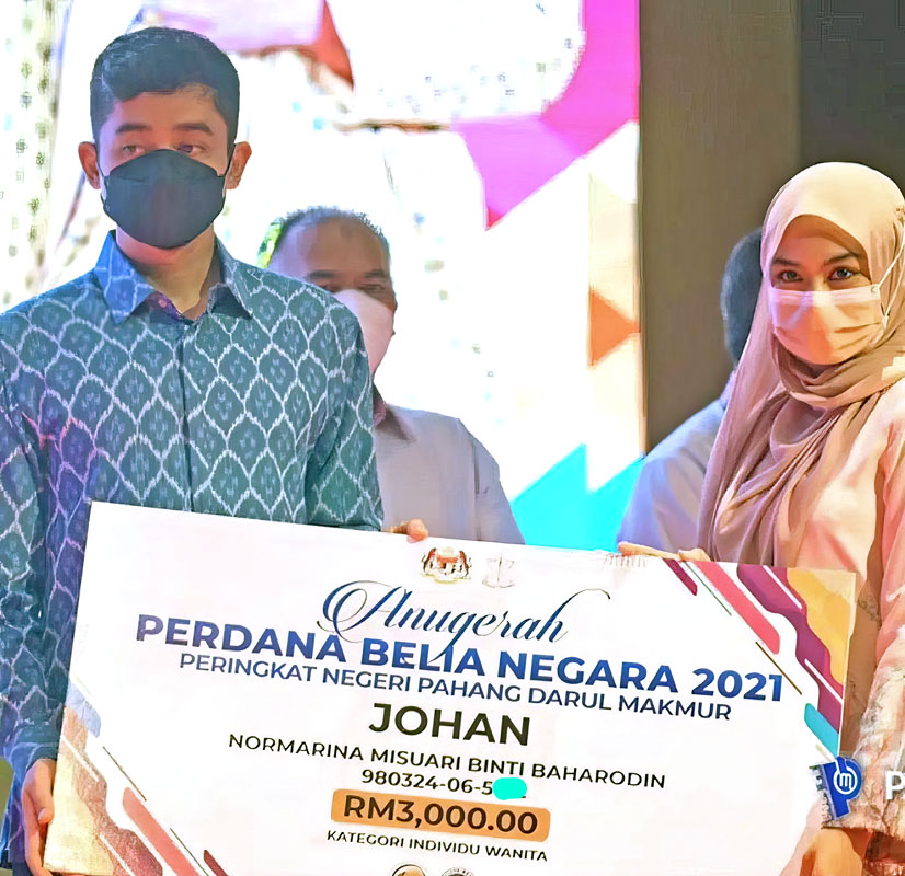 Normarina is very patriotic and always helps the youth in Pahang. Because of this, she received the National Youth Premier Award (APBN) 2021 in the women's category. Not only that, she is also the Assistant Secretary of the Rompin District Youth Council and a female Vice President of the Pahang State Youth Council.