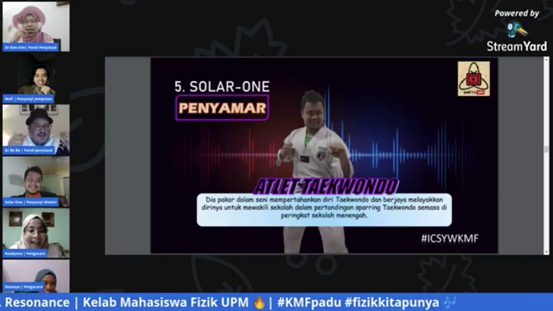 The programme was conducted by two hosts, Rusdyana Natasa Ghazali, a student of Bachelor of Science (Honours) Major in Physics, and Natasya Syamsol, a student of Bachelor of Science (Honours) Major in Material Science.