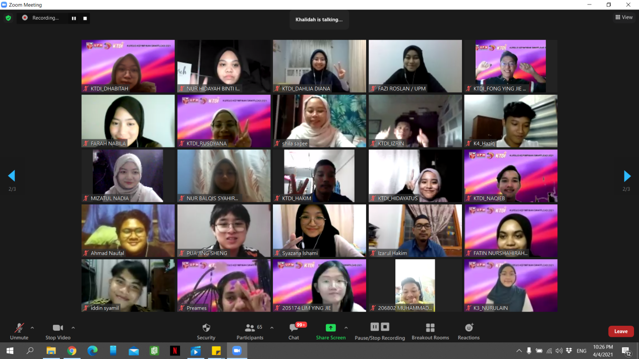 A total of 60 Year 1 students from the Tun Dr. Ismail College (KTDI), Universiti Putra Malaysia (UPM), have joined the SmartLEAD 2021 leadership course in hybrid mode for six days, ending today.