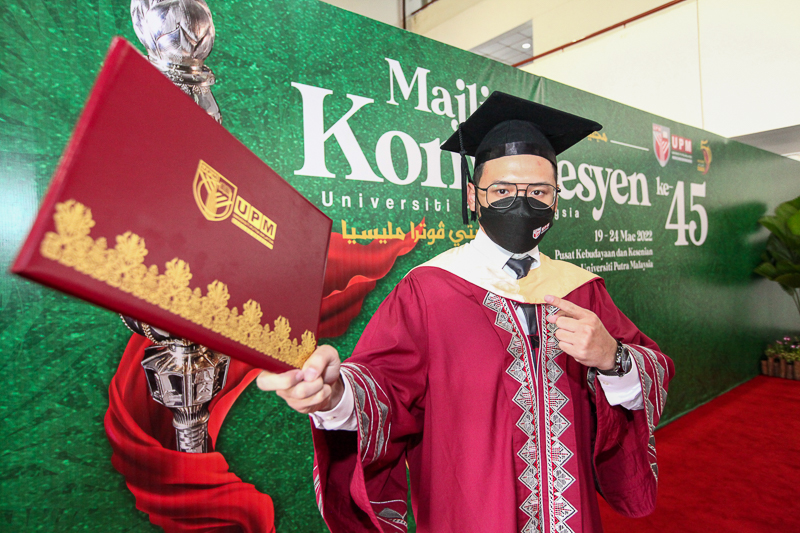 "I want to contribute to the nation’s swimming arena," said the youngest of the two siblings when meeting after receiving his master's degree, at Session 6 of the 45th Universiti Putra Malaysia (UPM) Convocation Ceremony here today.