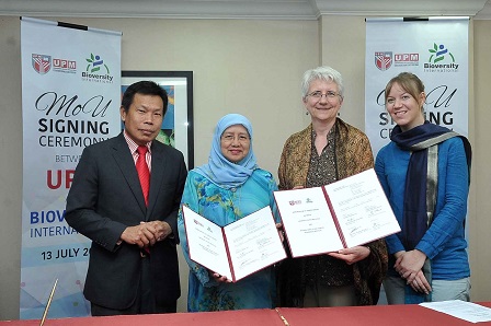 SERDANG, July 20 – Universiti Putra Malaysia (UPM) and Bioversity International have signed a Memorandum of Understanding (MoU) to develop collaborative opportunities to enhance the performance of UPM in research, particularly in agriculture, forestry and biotechnology in the international arena.